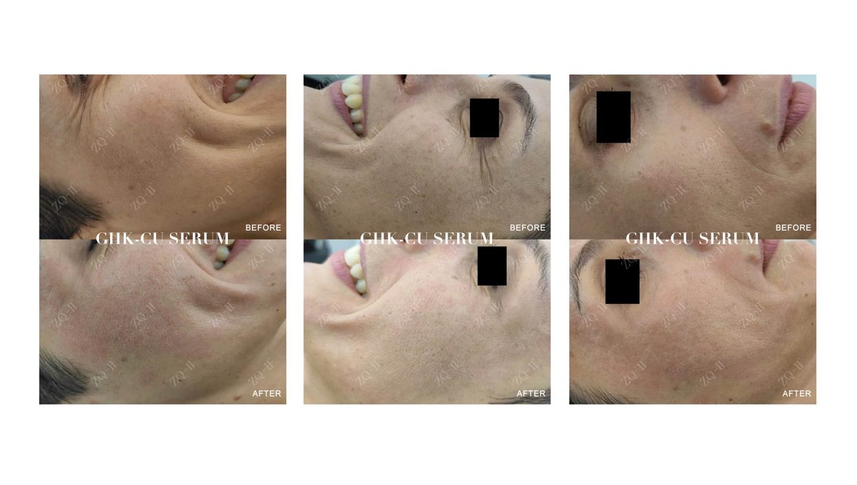 Kupferpeptide sind wie eine Hautpflege -Lizenzgebühr. Sie festlegen, reparieren und schützen und geben Ihnen dieses lebendige, jugendliche Glühen. Sicher, sie sind eine Investition, aber sie sind es absolut wert. Ein deutscher Kunde erlebte nach einer bemerkenswerten Hautverbesserung nach der DurchführungZQ-II GHK-CU-SerumAufgetragen mit einer 0,5 -mm -Mikrona -Rolle. Die unmittelbaren Ergebnisse zeigten sichtbar fester, glattere Haut mit einer merklichen Verringerung der feinen Linien und Falten, wie im Vor- und Nachher-Vergleich zu sehen ist. Wenn Sie die Magie von Kupferpeptiden erleben möchten,ZQ-II GHK-CU-SerumIst Ihre ultimative Wahl, sichtbar verjüngte und lebendige Haut zu erreichen.